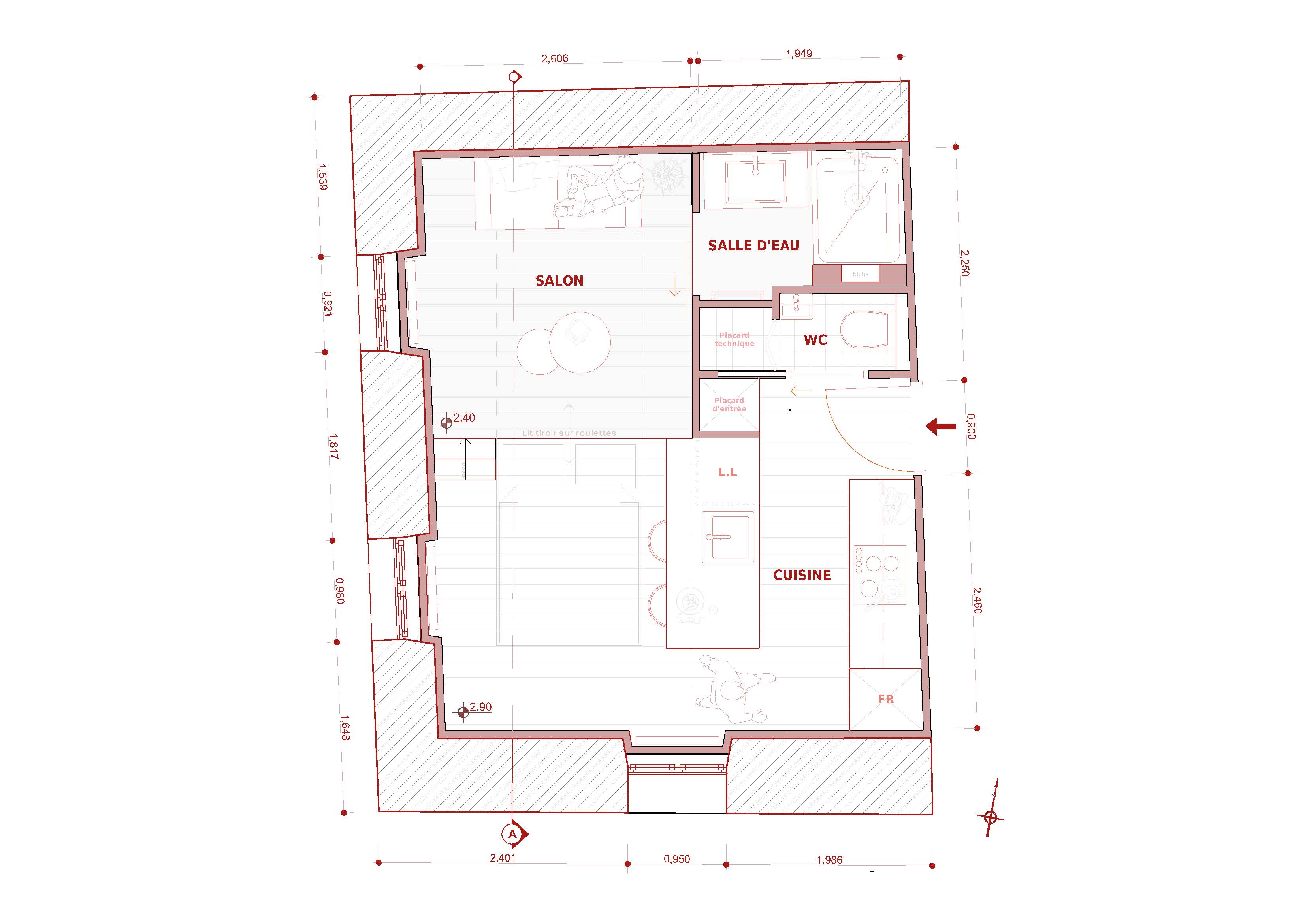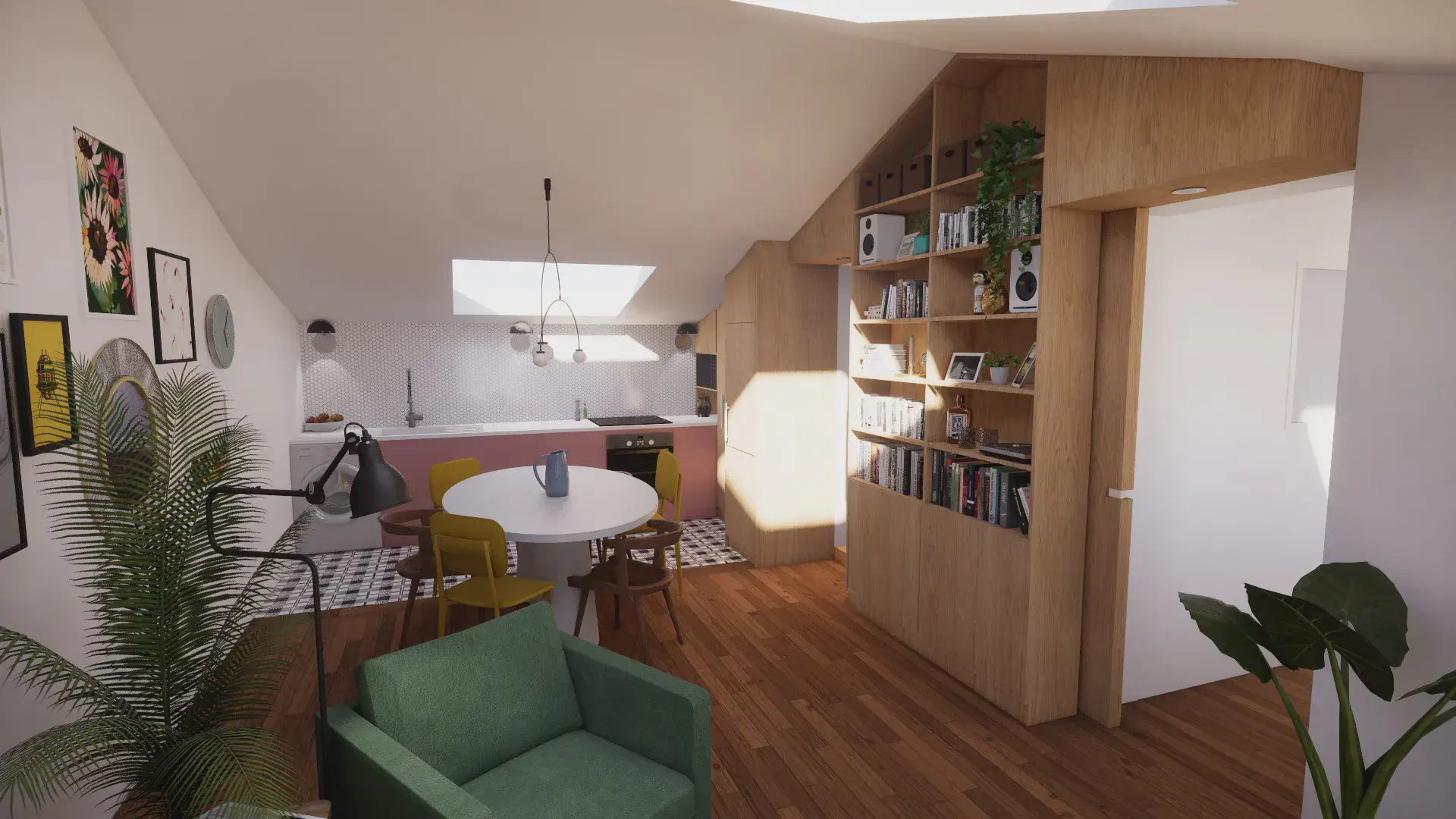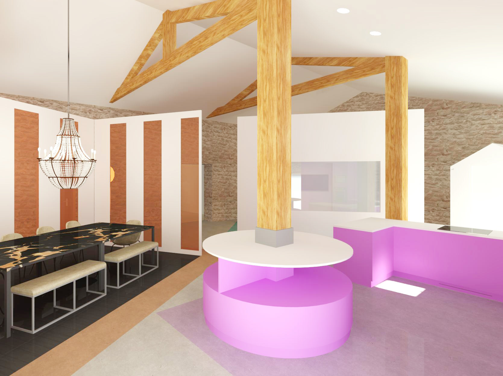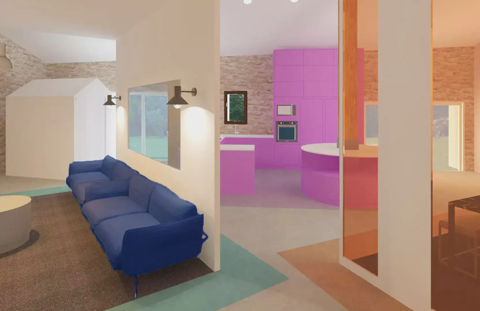 Avec un peu de recul désormais, mon parcours suit une progression logique. Dans un premier temps, les études d’art s’imposent à moi en réponse à un besoin de créativité et d’expression. L’expérimentation d’un panel de médiums m’a permis d’être ouverte sur un vaste champ des possibles. Ce temps immersif dans l’art au travers d’une ouverture sur le monde par le biais de la culture m’a permis une position constante de recherche, de curiosité et d’apprentissage. Pour moi tout est tremplin de pensées. Au terme de trois années d’expression et recherche artistique ma réflexion a évolué vers l’art immersif où l’humain est au cœur de l’expérience, en lien à l’environnement. Un besoin d’ancrer ma réflexion plus dans le concret : d’agir et inter-agir sur et avec le monde environnant. Mais comment, au sortir d’une « bulle artistique », transposer ma pratique dans la sphère du quotidien ? L’architecture d’intérieur me semble, alors, être une réponse : une scénographie de la vie. Me permettant d’avoir un impact sensible sur le monde réel. De plus, en adéquation avec mon exigence personnelle, l’architecture d’intérieur répond à ma conviction profonde d’étendre mon éthique écologique sur le champ professionnel. En effet, la pratique de la rénovation permet d’inclure une histoire du bâtiment, en faisant avec ce qu’il y a déjà d’existant. Un enjeu capital qui sera au cœur de l’architecture à venir. L’enseignement technique, conjugué à la pratique, m’a apporté rigueur, autonomie et une résilience face aux contraintes. Au travers de stages, d’une année en alternance en agence et de trois ans en indépendant Free-lance, j’ai accumulé une expérience professionnelle. J’ai travaillé sur des projets variés, allant de la réhabilitation en passant par de la rénovation et des surélévations. Sur des projets résidentiels de maisons ou d’immeubles comme sur des projets commerciaux de restaurants ou bureaux. Mon expérience du terrain m’aura été utile.