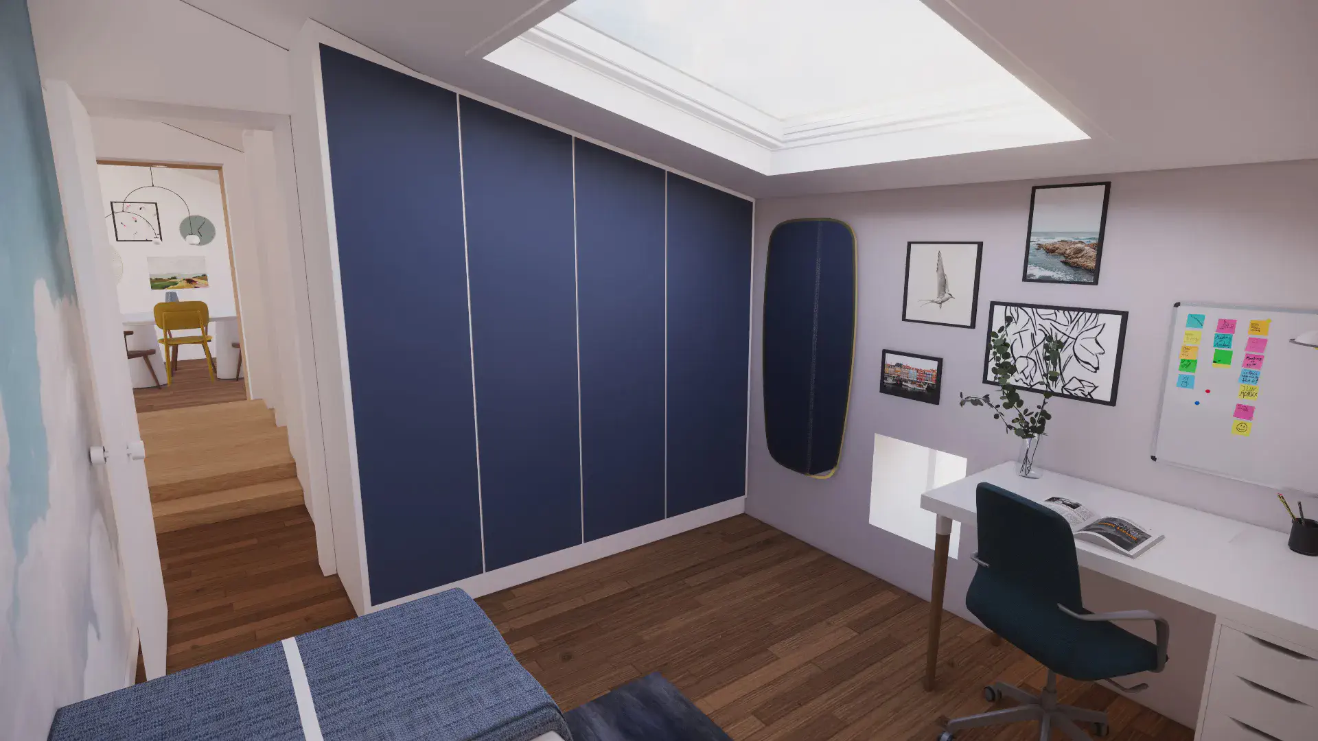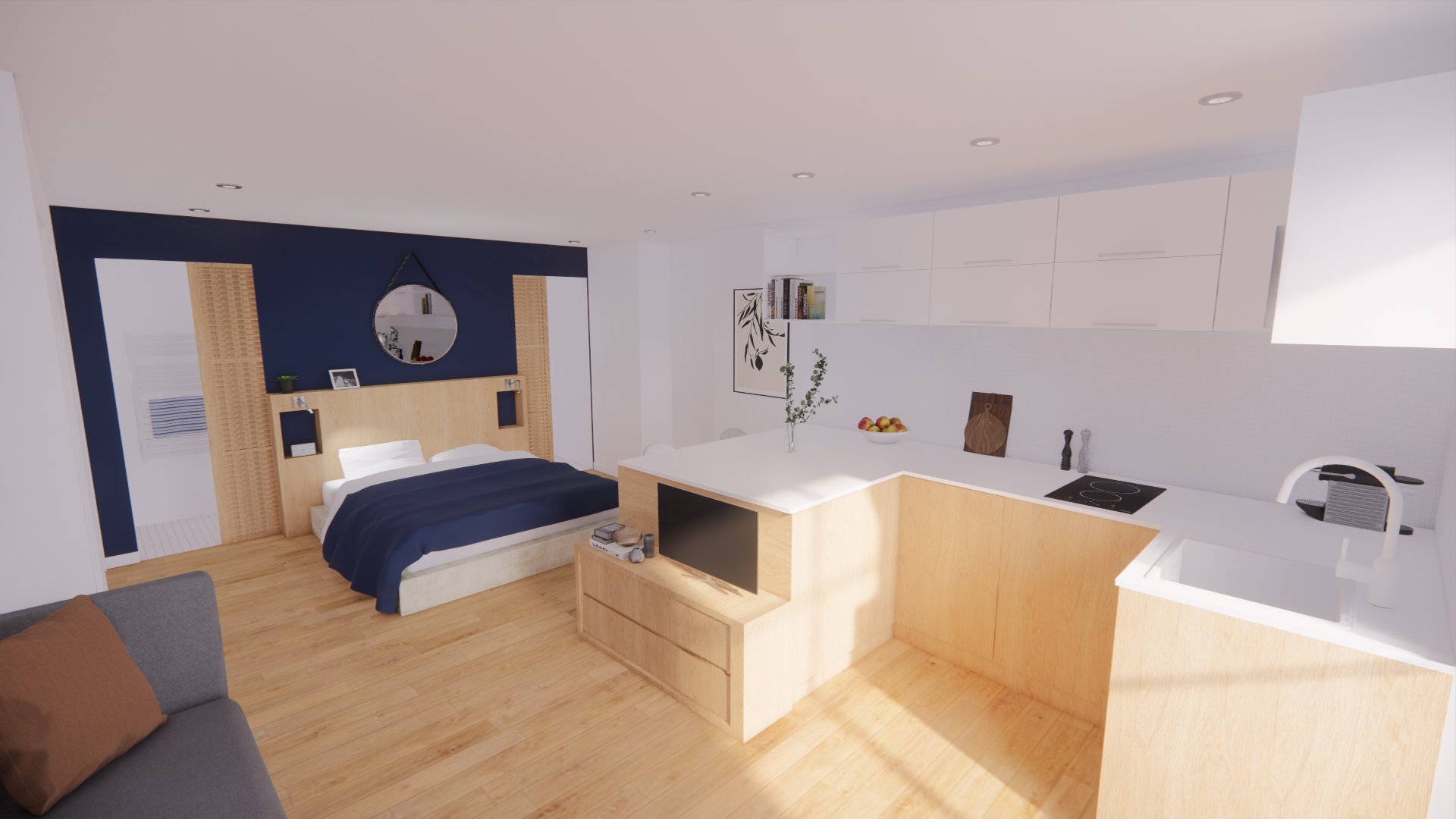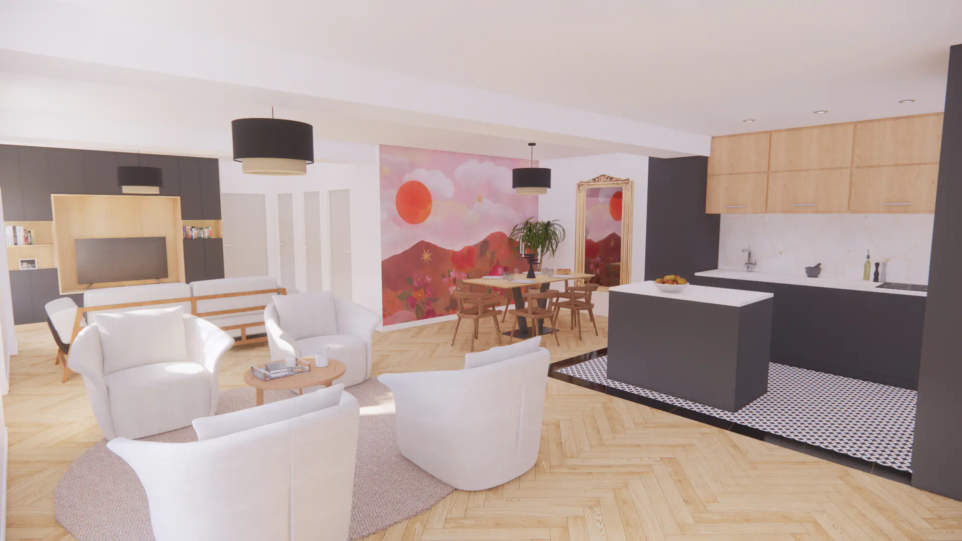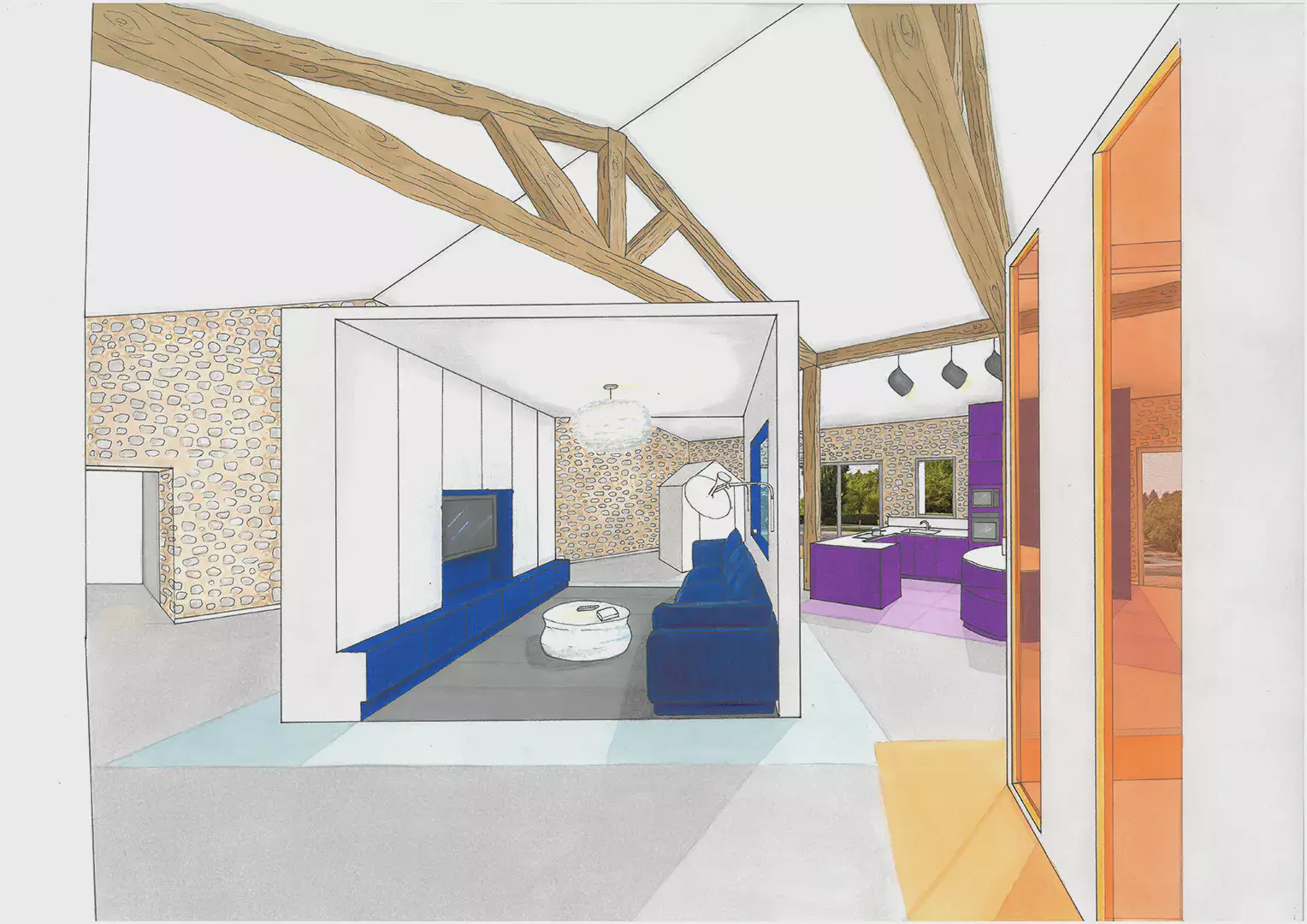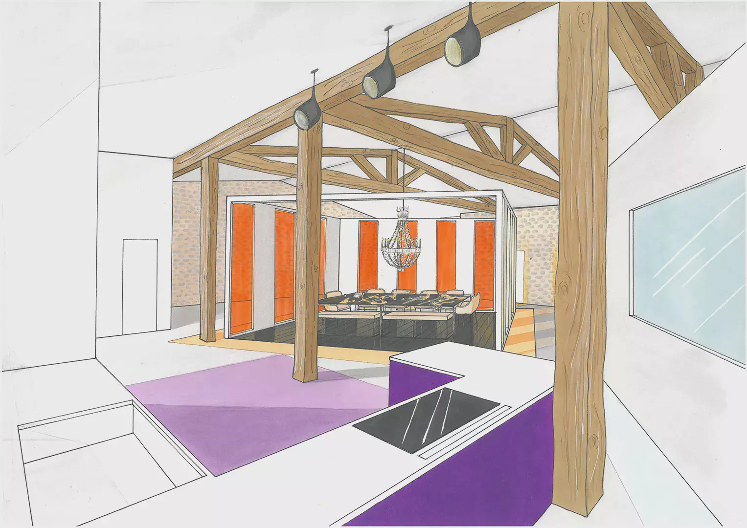 Avec un peu de recul désormais, mon parcours suit une progression logique. Dans un premier temps, les études d’art s’imposent à moi en réponse à un besoin de créativité et d’expression. L’expérimentation d’un panel de médiums m’a permis d’être ouverte sur un vaste champ des possibles. Ce temps immersif dans l’art au travers d’une ouverture sur le monde par le biais de la culture m’a permis une position constante de recherche, de curiosité et d’apprentissage. Pour moi tout est tremplin de pensées. Au terme de trois années d’expression et recherche artistique ma réflexion a évolué vers l’art immersif où l’humain est au cœur de l’expérience, en lien à l’environnement. Un besoin d’ancrer ma réflexion plus dans le concret : d’agir et inter-agir sur et avec le monde environnant. Mais comment, au sortir d’une « bulle artistique », transposer ma pratique dans la sphère du quotidien ? L’architecture d’intérieur me semble, alors, être une réponse : une scénographie de la vie. Me permettant d’avoir un impact sensible sur le monde réel. De plus, en adéquation avec mon exigence personnelle, l’architecture d’intérieur répond à ma conviction profonde d’étendre mon éthique écologique sur le champ professionnel. En effet, la pratique de la rénovation permet d’inclure une histoire du bâtiment, en faisant avec ce qu’il y a déjà d’existant. Un enjeu capital qui sera au cœur de l’architecture à venir. L’enseignement technique, conjugué à la pratique, m’a apporté rigueur, autonomie et une résilience face aux contraintes. Au travers de stages, d’une année en alternance en agence et de trois ans en indépendant Free-lance, j’ai accumulé une expérience professionnelle. J’ai travaillé sur des projets variés, allant de la réhabilitation en passant par de la rénovation et des surélévations. Sur des projets résidentiels de maisons ou d’immeubles comme sur des projets commerciaux de restaurants ou bureaux. Mon expérience du terrain m’aura été utile.